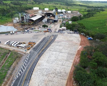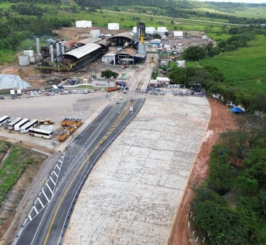 Recuperação do pavimento asfáltico da via de acesso à usina e implantação de área de estacionamento para caminhões
